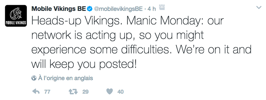 Mobile Vikings heeft toch de moeite genomen om te communiceren via hun website en twitter.