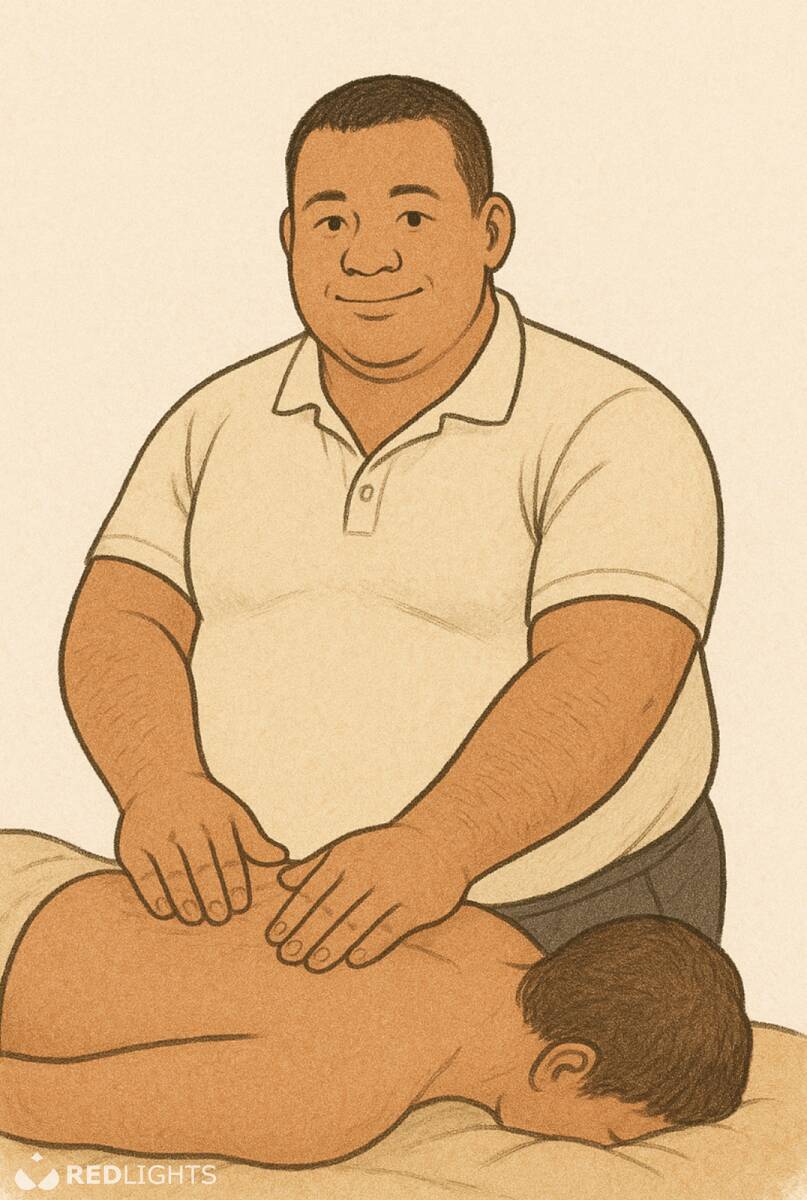 Massage voor de volslanke man >110kg gegeven door een volslanke mannelijke masseur. Mannelijke volslanke masseur (115kg) ontvangt volslanke mannen, voor een zalige rustgevende relaxmassage. Hou je van een volslanke mannelijk masseur, die je tot rust brengt met heerlijke sensuele, erotische massage, waar niet gekeken wordt op de tijd, in alle rust en discretie. Wil je genieten als volslanke man van een relaxmassage, en houd van aanraking, strelingen en zachte knedingen, op een verwarmde massagetafel met warme olie en zachte achtergrond, probeer het dan zeker eens uit. Deze massage loopt minumum 60 minuten, ben jij aan rust toe? Regio Tongeren