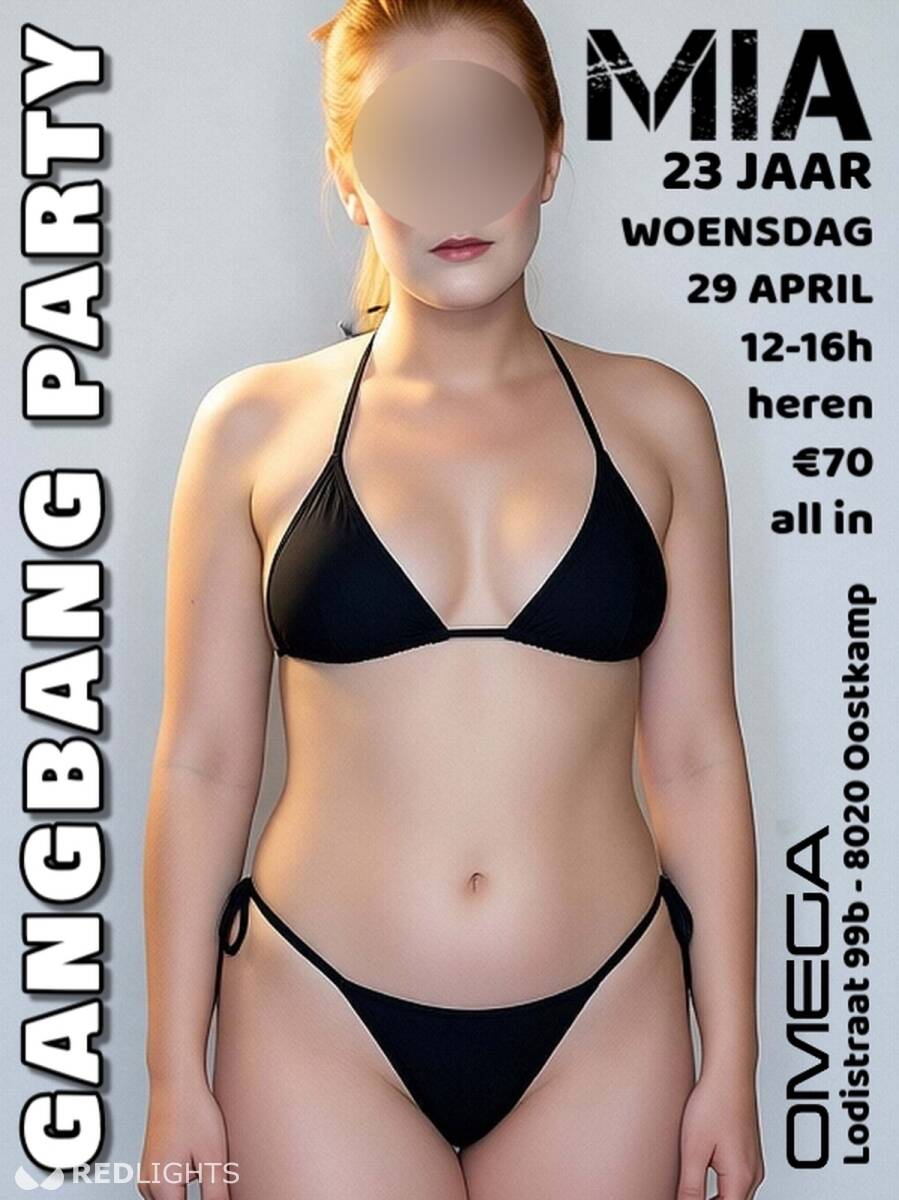 Ze is jong, ze is lief en super sexy! Mia houdt van veel seks met leuke mannen, eender welke leeftijd! Neuken doet ze met condoom, pijpen kan zonder mits voldoende hygiëne. Je mag langskomen zonder afspraak of reservatie en je blijft zolang je wil. We starten om 12u en het feestje duurt tot ten laatste 16u. Hapjes en drankjes zijn gratis inbegrepen. Jouw auto staat veilig en ongezien op onze private parking, achteraan het gebouw. Deelname: Heren €70, koppels met reservatie €20, anders €50. Single dames gratis. Mia verwent geen koppels! Adres: Lodistraat 99 B in 8020 Hertsberge (Oostkamp).