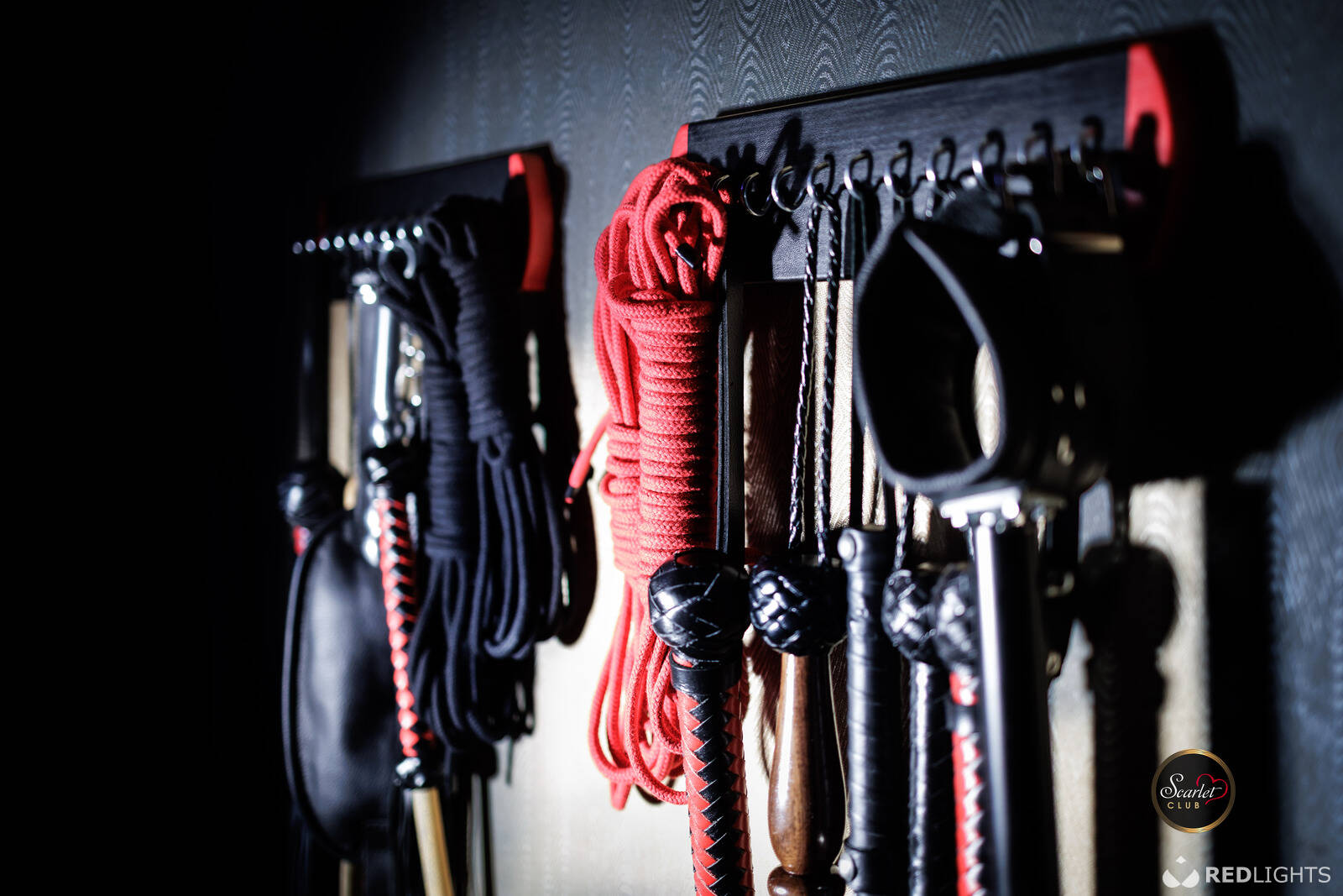 Deze bijzondere kamer beschikt over een multifunctionele kooi met gloroe holes , een stijlvol Andreaskruis en diverse bondage en opsluitmogelijkgeden voor een verassend speelse ervaring.