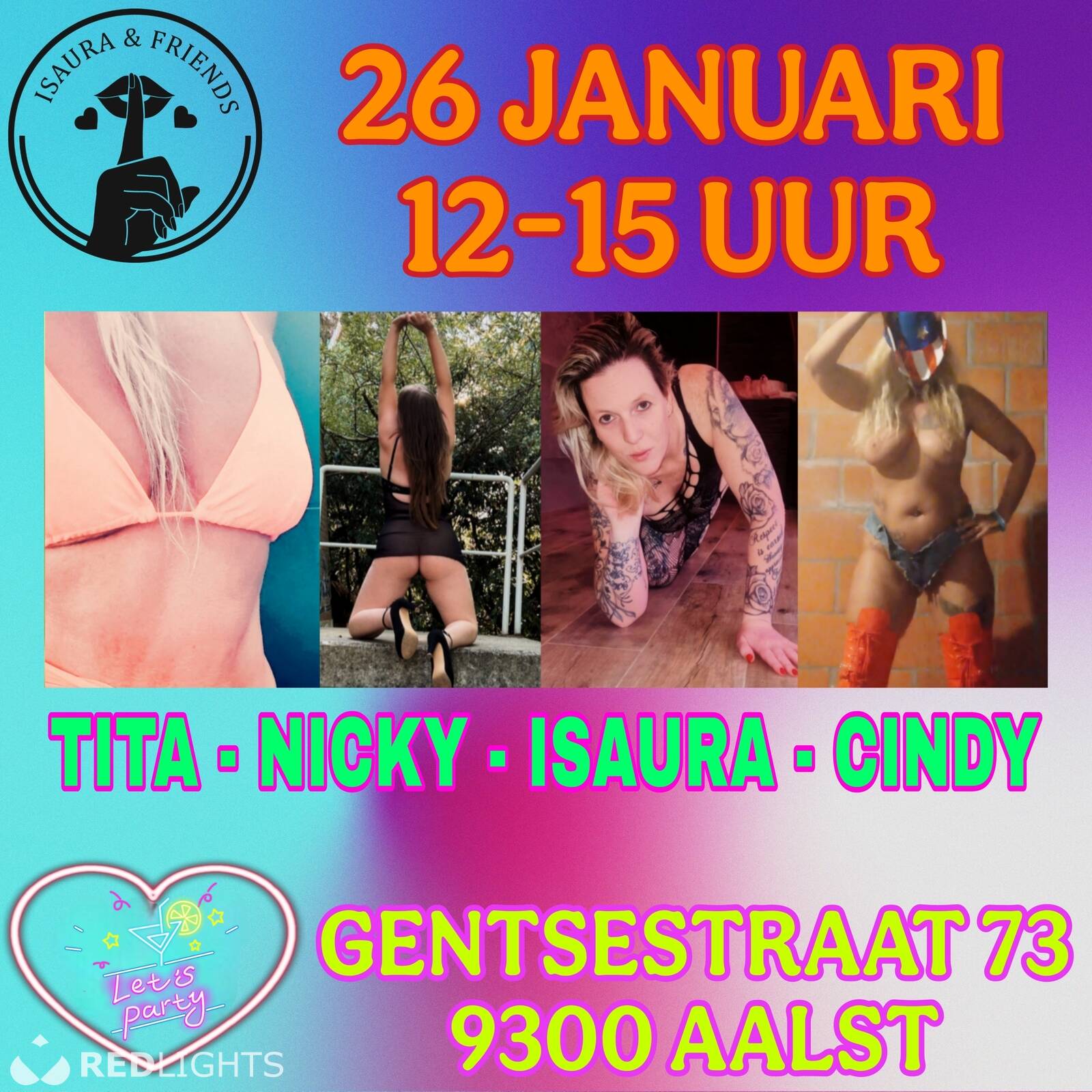 Heb je zin in een geil gangbang feestje met 4 meiden die van aanpakken weten? Mis deze kans dan niet! Pijpen, neuken, klaarkomen in de mond, slikken, squirten, ... ja dat zit in het aangeboden pakket van deze 4 toppers! Uiteraard behoren vingeren en beffen ook tot de mogelijkheden. Neuken is enkel met condoom, pijpen kan zonder.