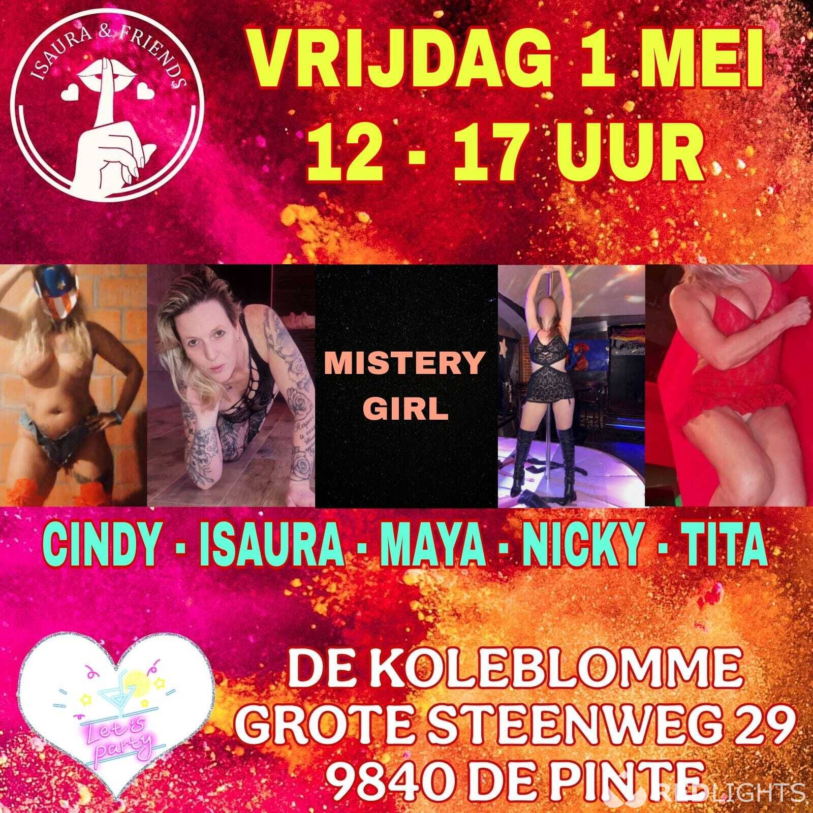 Heb je zin in een geil gangbang feestje met 5 meiden die van aanpakken weten? Mis deze kans dan niet! Pijpen, neuken, klaarkomen in de mond, slikken, squirten, ... ja dat zit in het aangeboden pakket van deze 5 toppers! Uiteraard behoren vingeren en beffen ook tot de mogelijkheden. Neuken is enkel met condoom, pijpen kan zonder.